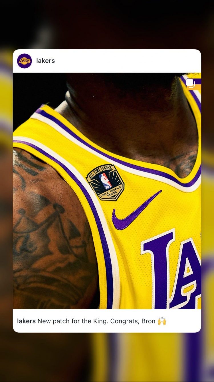 詹姆斯更新IG晒出自己球衣的特制补丁,并配文:祝贺你啊大兄弟👑📘👑。”
