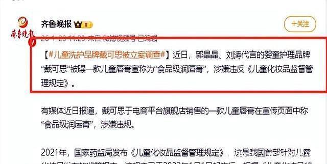 郭晶晶代言翻车不到一周,最怕的事还是来了,网友:吃相太难看谁能想到,给孩子挑一支唇膏,现在都变成“玄学”了?本来想着看成分、查备案,甚至还会相信一句明星妈妈的推荐,但这次郭晶晶代言的戴可思暴雷,真把一众家长看傻了眼。
