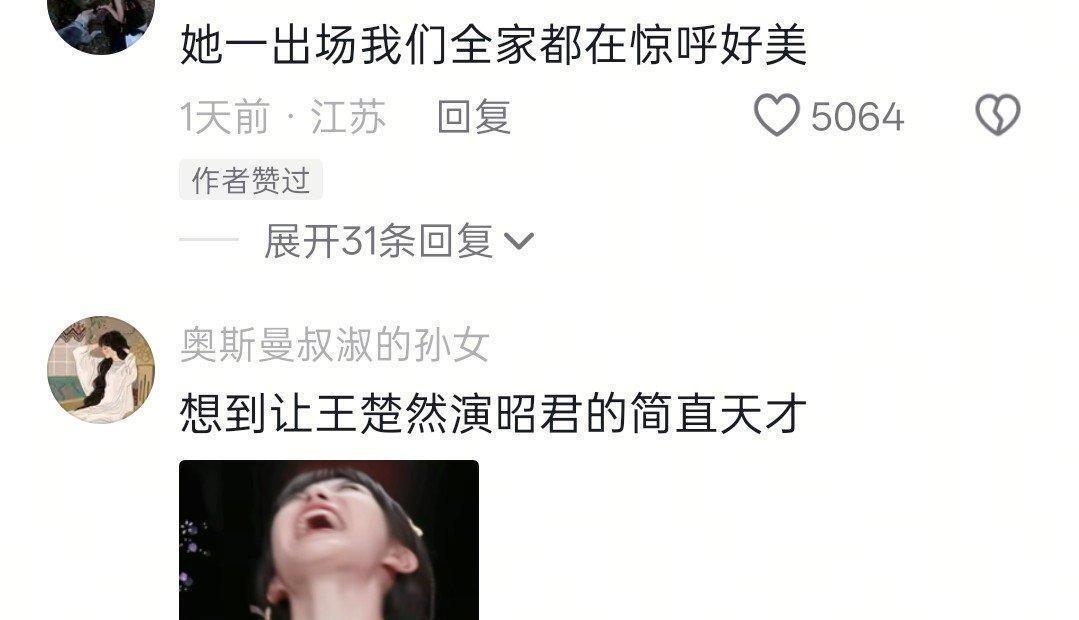 今年春晚能柳暗花明,可不是碰运气。王昭君这个角色要的是沉稳中透出的气场,不是甜美、俊朗或者青春感。王楚然脸型圆润,骨架舒展,个子高挑,穿汉服非但不显单薄,反而透着恰到好处的古典丰韵。现在流行锥子脸、尖下巴和瘦削身材,可她这种长相在汉唐画作里比比皆是。央视选她或许没多考虑,却正好戳中了大众对过度滤镜审美的审美疲劳。