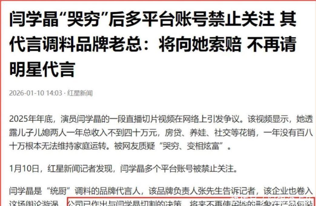 最近网上闹得沸沸扬扬的闫学晶风波,真是一波未平一波又起。原本以为发个道歉就能平息众怒,结果反倒像往火堆里浇了桶油——不仅没熄,还烧得更旺了。       她那封躲在朋友圈角落、连脸都没露的致歉信,被不少人看作是“临死前的扑腾”。大家不是不能原谅,可你总得拿出点诚意吧?光打几行字,谁信是你自己写的?更何况,这事儿早就不是一句“对不起”能摆平的了。       品牌合作全撤了,社交账号直接封禁,连带着赵家班的直播间都遭了殃。好些人突然涌进去刷“酸黄瓜”,搞得人家正经带货都做不下去。有意思的是,杨议倒趁机卖起了同款酸黄瓜,流量嗅觉倒是灵得很。       更麻烦的是,这事还牵出了一堆陈年旧账。她儿子林傲霏被扒学历,虽然中戏出来澄清了,但质疑声一时半会儿消不掉。何庆魁本想替她说句话,结果因为早年“白眼狼”的言论被翻出来,反而把自己也卷进去了。他儿子更狠,直接在网上质问赵本山:“有八个亿为啥不给我爸两个?”还说当年送的房子压根没过户,只是“免费看房”。这话一出,老赵赶紧把手续办了,可人情味儿,好像也跟着过户走了。       最要命的还在后头——有人实名举报她偷税。查她公司流水发现,直播收入动辄上千万,却用一堆短命壳公司来回倒腾,干一两年就注销。这种操作,懂行的都知道不对劲。如今证据已经递到相关部门,就看后续怎么收场了。       说到底,在这个人人盯着屏幕的时代,一旦信誉崩了,再想爬回来,比登天还难。